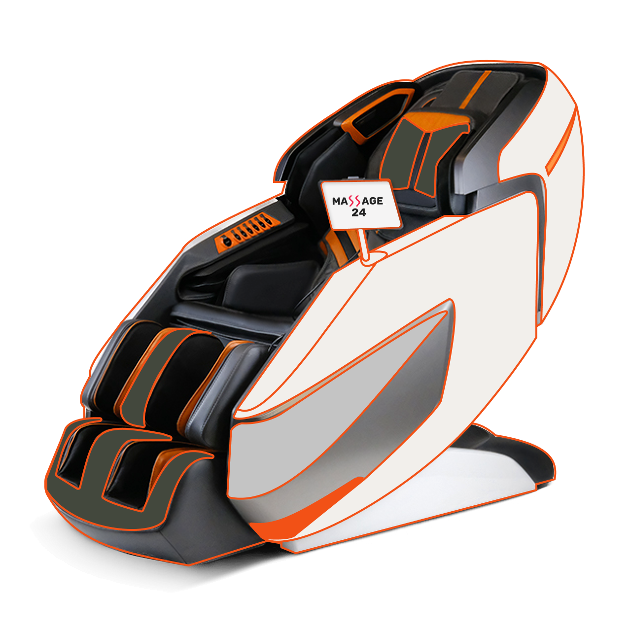 LS образний масаж спини від верхівки близько 110 см. Датчики визначення становища тіла. Захоплення плечової зони. Масаж рук. Проминання гомілки компресія. Компресія та ролики в стопі. Датчики визначення становища тіла. Режим нульової гравітації. Зміна нахилу крісла. 9 автопрограм. Прогрів. Вбудовані стовпчики.
