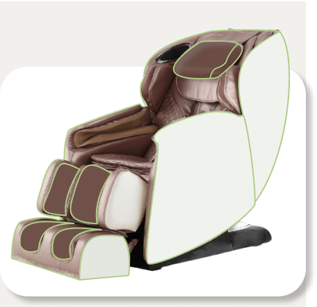 L подібний Масаж спини від верхівки до стегон прохід близько 100 см. Поминання гомілки компресія. Датчики визначення становища тіла. Зміна нахилу крісла. 6 автопрограм
